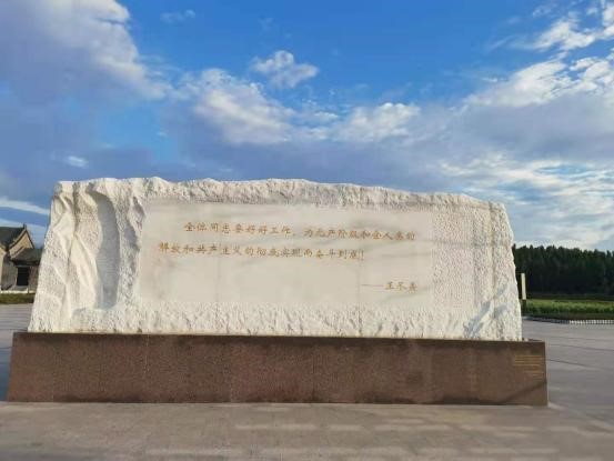 盡美干部學院坐落于王盡美的家鄉諸城市枳溝鎮,是個山清水秀的好地方。清晨5點,我便起床到學院外邊走一走,周邊樸實的村民也開始了一天的忙碌。不遠處的半山腰上有個涼亭,在這炎炎夏季的清晨矗立中央。整座學院安靜而祥和的存在于這片大地之上,給人一種心曠神怡的感覺,這片祥和孕育了黨的光輝,照耀在山東的大地上,推動著歷史的車輪滾滾向前。走在盡美干部學院的路上一定要讀讀王盡美本身像后邊那句話:全體同志要好好工作,為無產階級和全人類的解放和共產主義的徹底實現而奮斗到底!來自于那個年代的聲音至今回響在這邊大地上,照耀著前進的路。